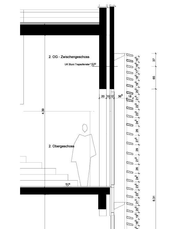 Detailzeichnung – Winkel und Anordnung der Lamellen