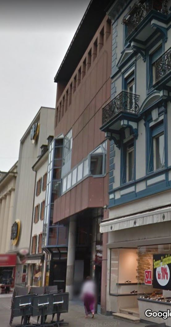 Kino Eldorado Basel — realisierte Betonlamellen-Fassade, Gesamtansicht von Osten Ergebnis — Strassenansicht