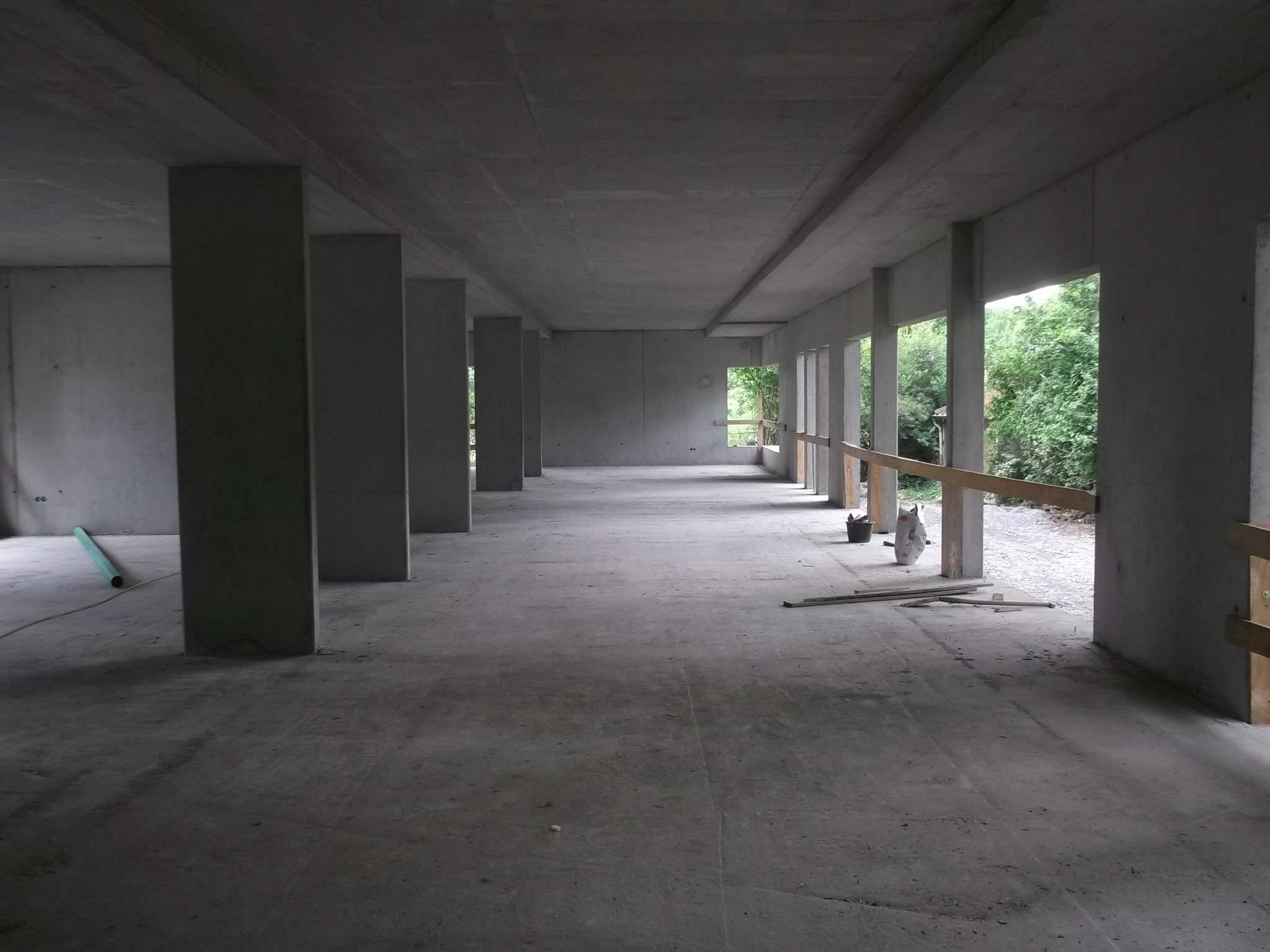 Ursprünglich waren Standard Oberlichtverglasungen in den Räumen geplant, die Licht in die Flure brachten. Im Rohbau erkannte ich jedoch die schöne, regelmässige Stützenmuster. Um diese zu unterstreichen wurde das Konzept der senkrechten Glasschlitze geboren.